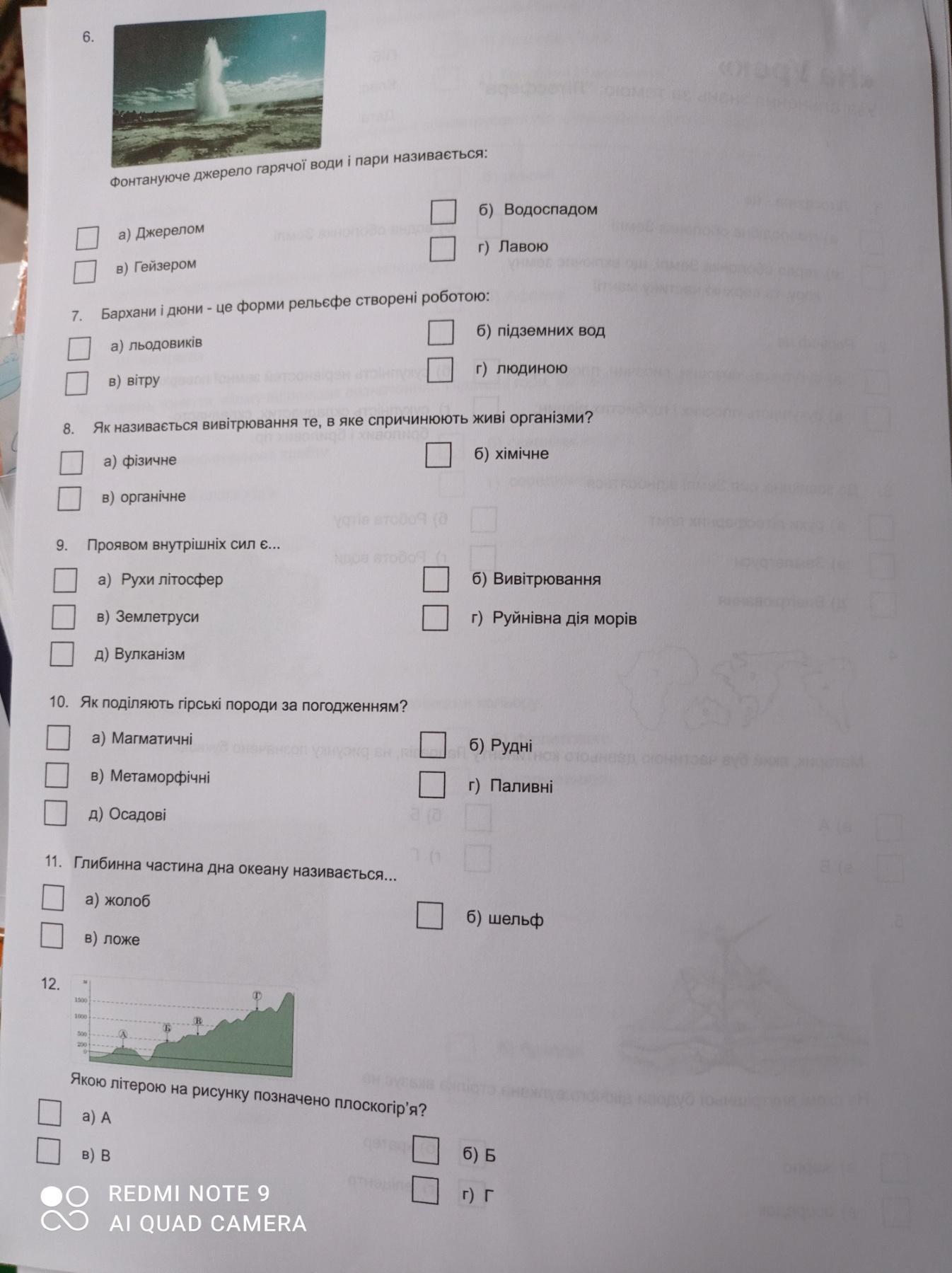 9.а)рухи літосфер, в)землетруси,д)вулканізм;