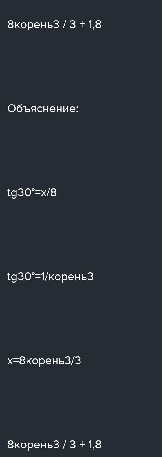 Мужчина стоит в 6 м от уличного фонаря. угол его падения по сравнению с уличным фонарем равен 30°. Найдите высоту уличного фонаря, используя рисунок ниже пожалуйста!