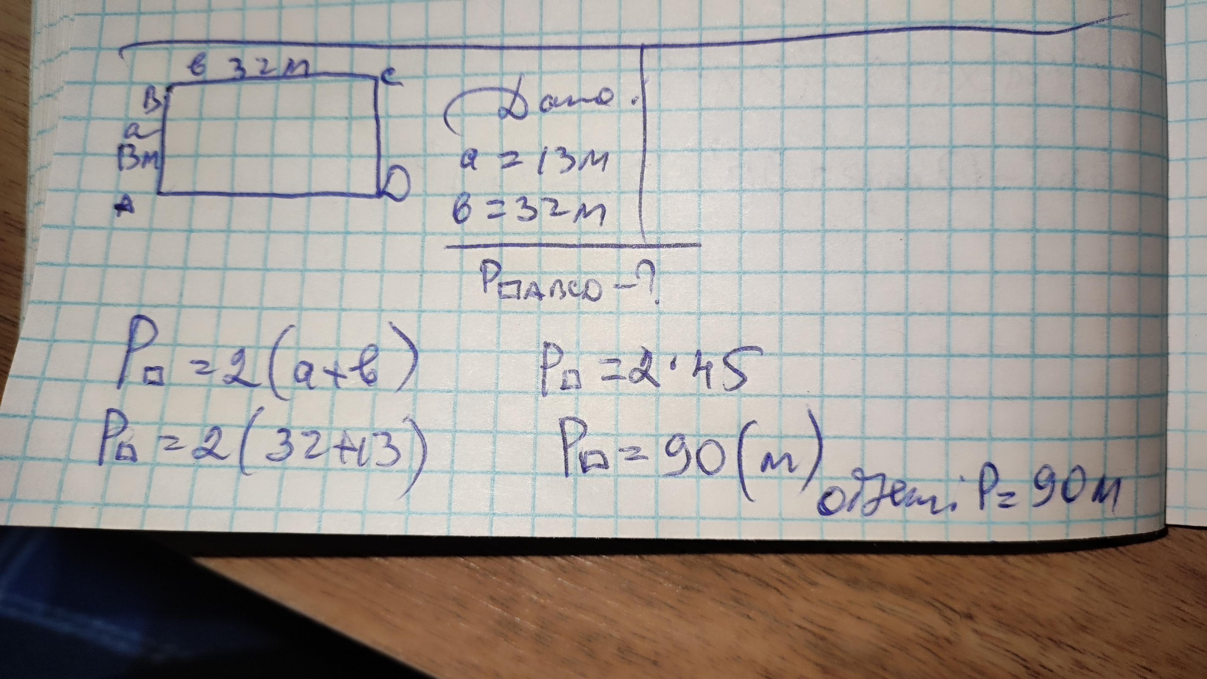 5. Найдите периметр прямоугольника со сторонами 32 м и 13 м....