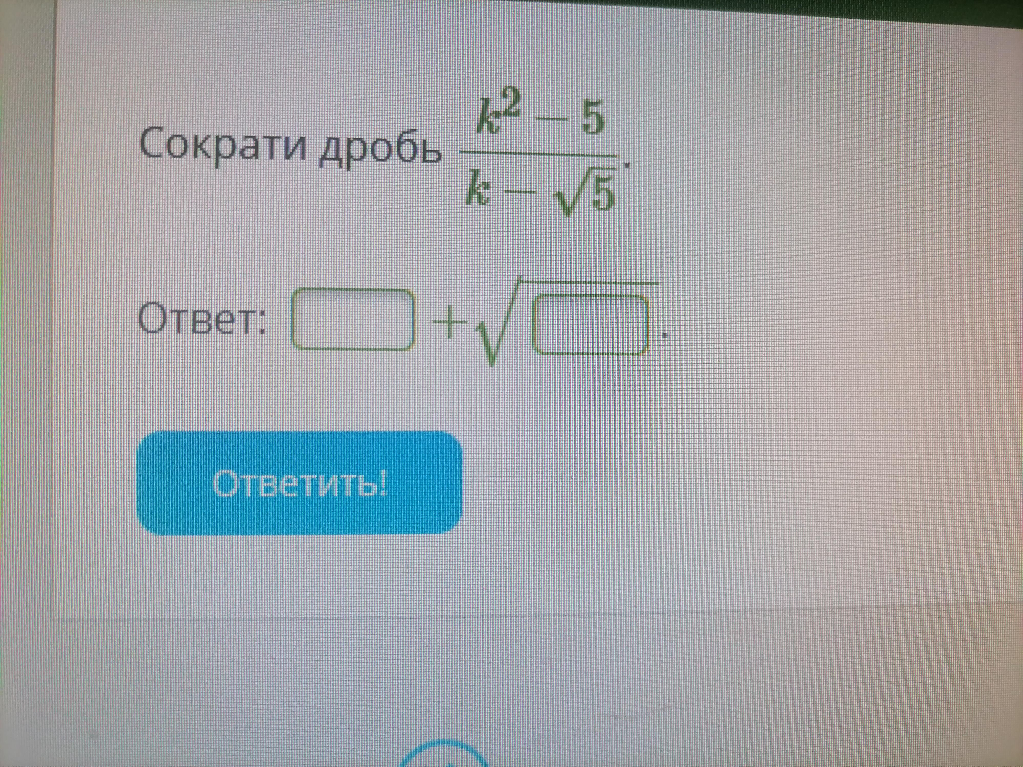 Сократи дробь: k^2-5/k-5 в корне