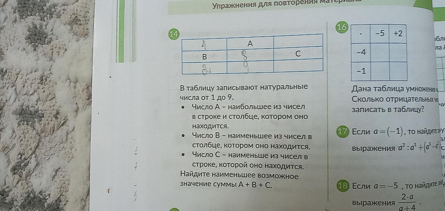 14.● B A В таблицу записывают натуральные числа от 1 до 9. Число А - наибольшее из чисел в строке и столбце, котором оно находится. ● С Число В - наименьшее из чисел в - столбце, котором оно находится. Число С-наименьше из чисел в старонке, которой оно находится. Найдите наименьшее возможное значение суммы А + В + С.