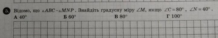 △ABC∼△MNP, тому відповідні кути цих трикутників рівні між собою: ∠A=∠M, ∠B=∠N=40°, ∠C=∠P=80°