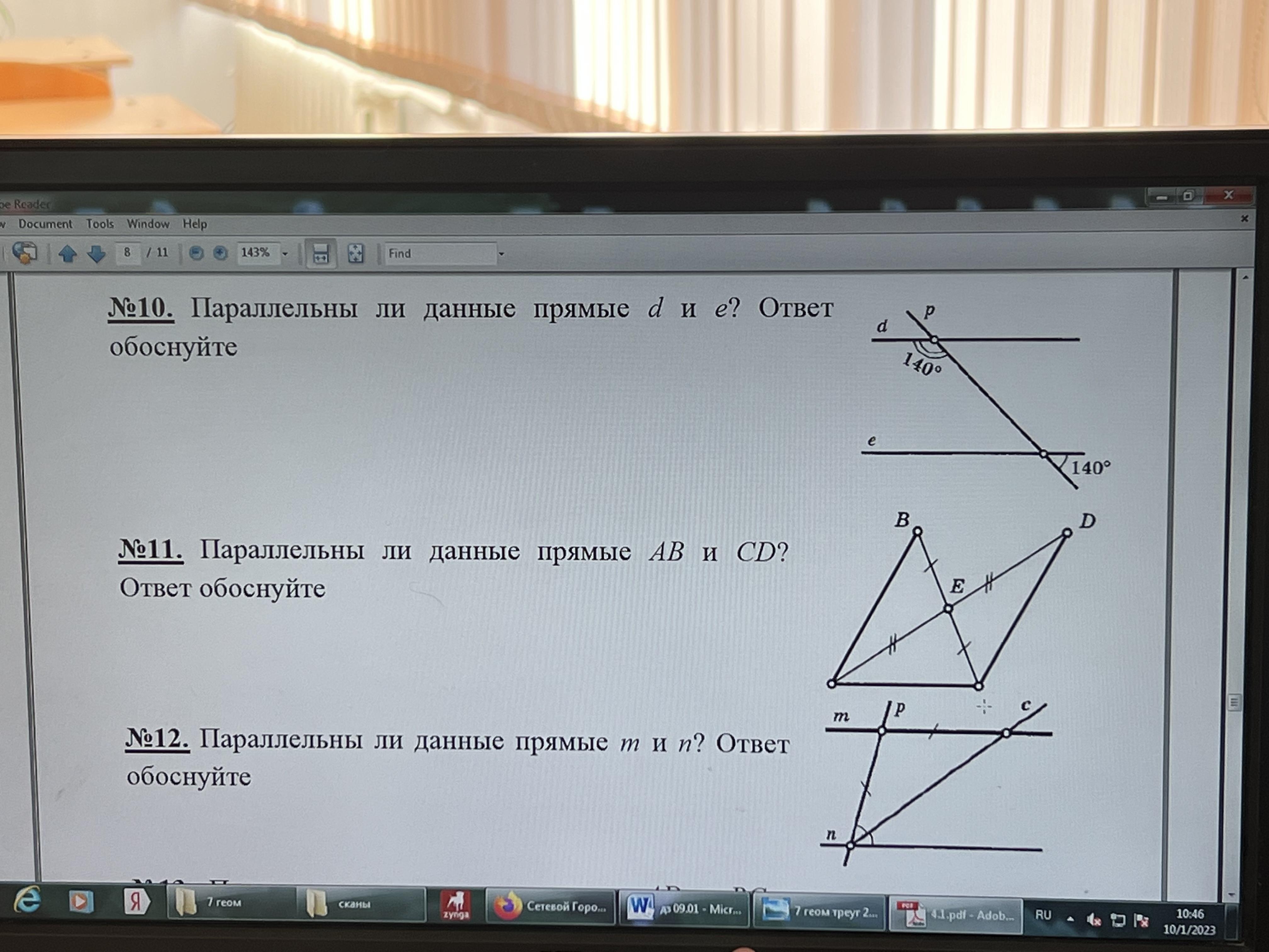 Параллельны ли данные прямые AB и CD ? Ответ обоснуйте 11 номер срочно
