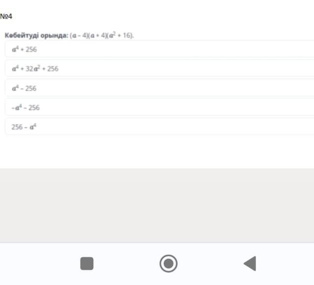 N04 Кобейтуді орында: (а-4)(+4)(2 + 16).