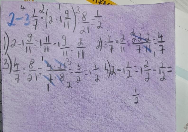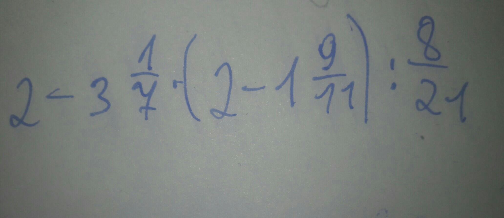 2-3 1/7*(2-1 9/11):8/21): 8/21 Помогите пожалуйста с этим примером вот еще на фотографии если не понятно дам 80 баллов