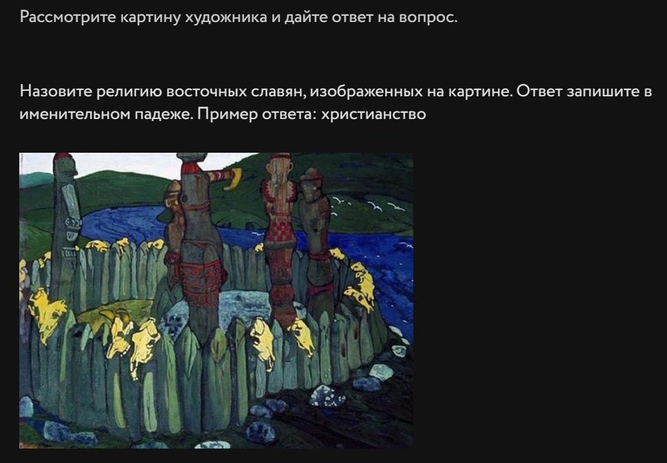 Назовите религию восточных славян, изображенных на картине. Ответ запишите в именительном падеже. Пример ответа: христианство