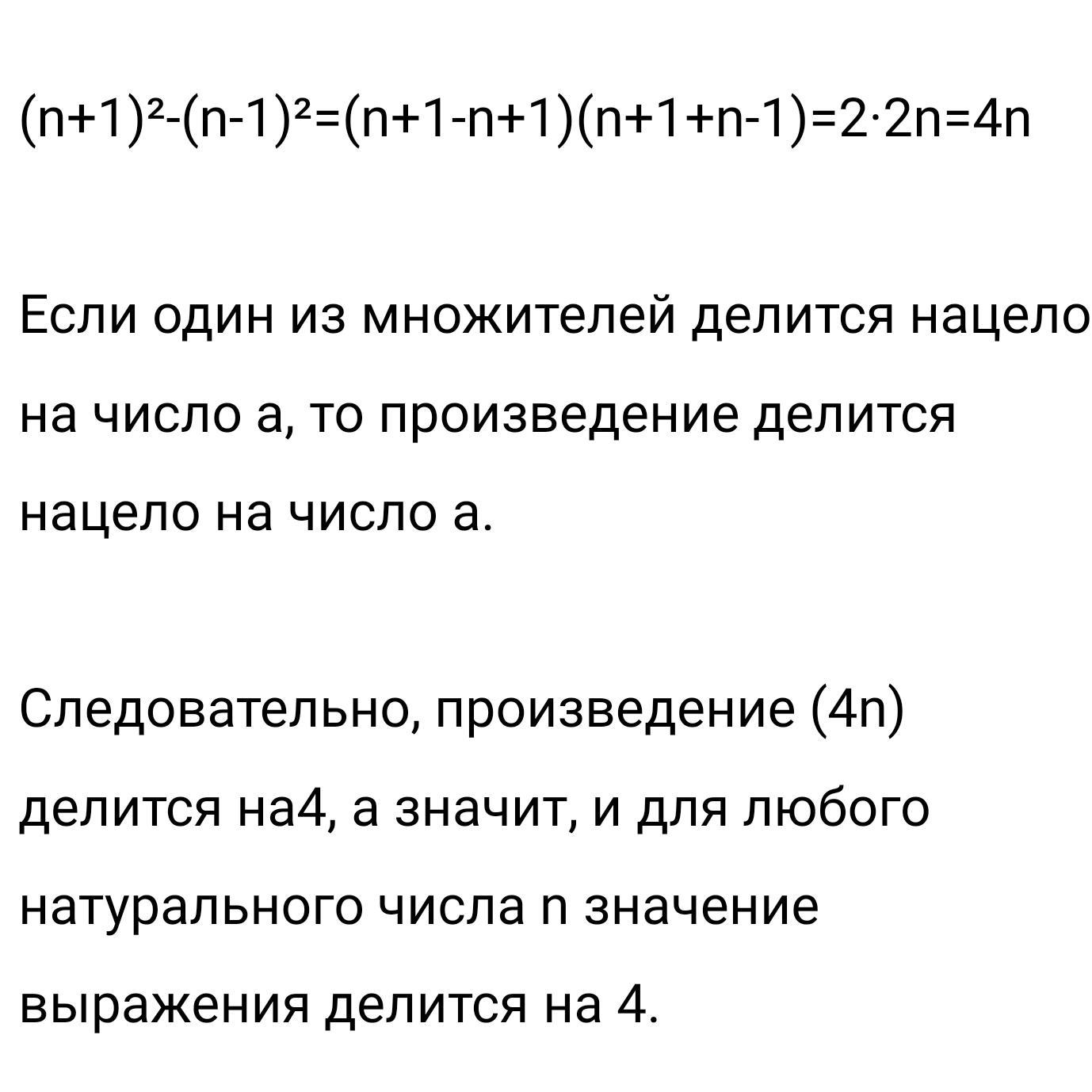 довести що за будь-якого натурального значення числа n значення виразу (n+1)²-(n-1)² кратне чотирьом