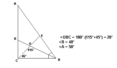 один із кутів утворений при перетині бісектрис прямого і гострого кутів трикутника , дорівнює 115*.знайдіть гострі кути даного трикутника?