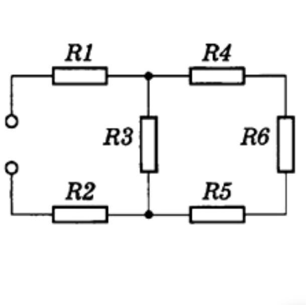 Електричне коло складається з 6 резисторів напругою по 8 Ом кожен Напруга на ділянці кола 220 В. Визначте загальний опір кола, та розподіл струму та напруг.