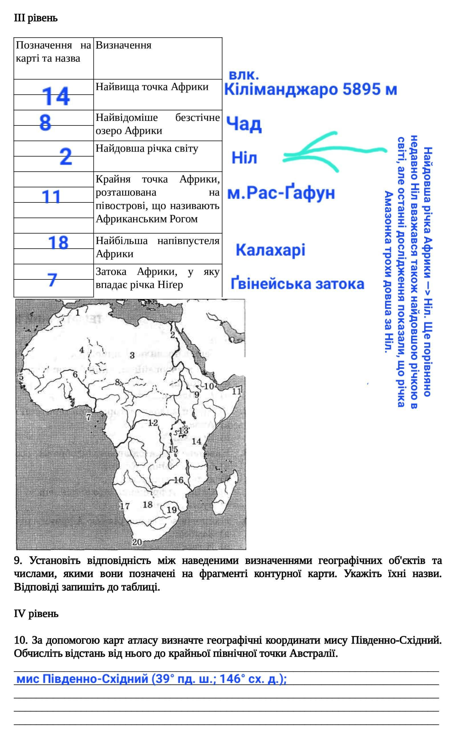 10. Визначаємо протяжність Австралії з півночі на південь за меридіаном 142° сх. д., географічна широта північної та південної точок на вказаному меридіані складають 11° пд. ш. та 38° пд. ш. відповідно, то 38°- 11° =27° - протяжність Австралії у градусах, 111 км • 27°= 2997км - протяжність у кілометрах.