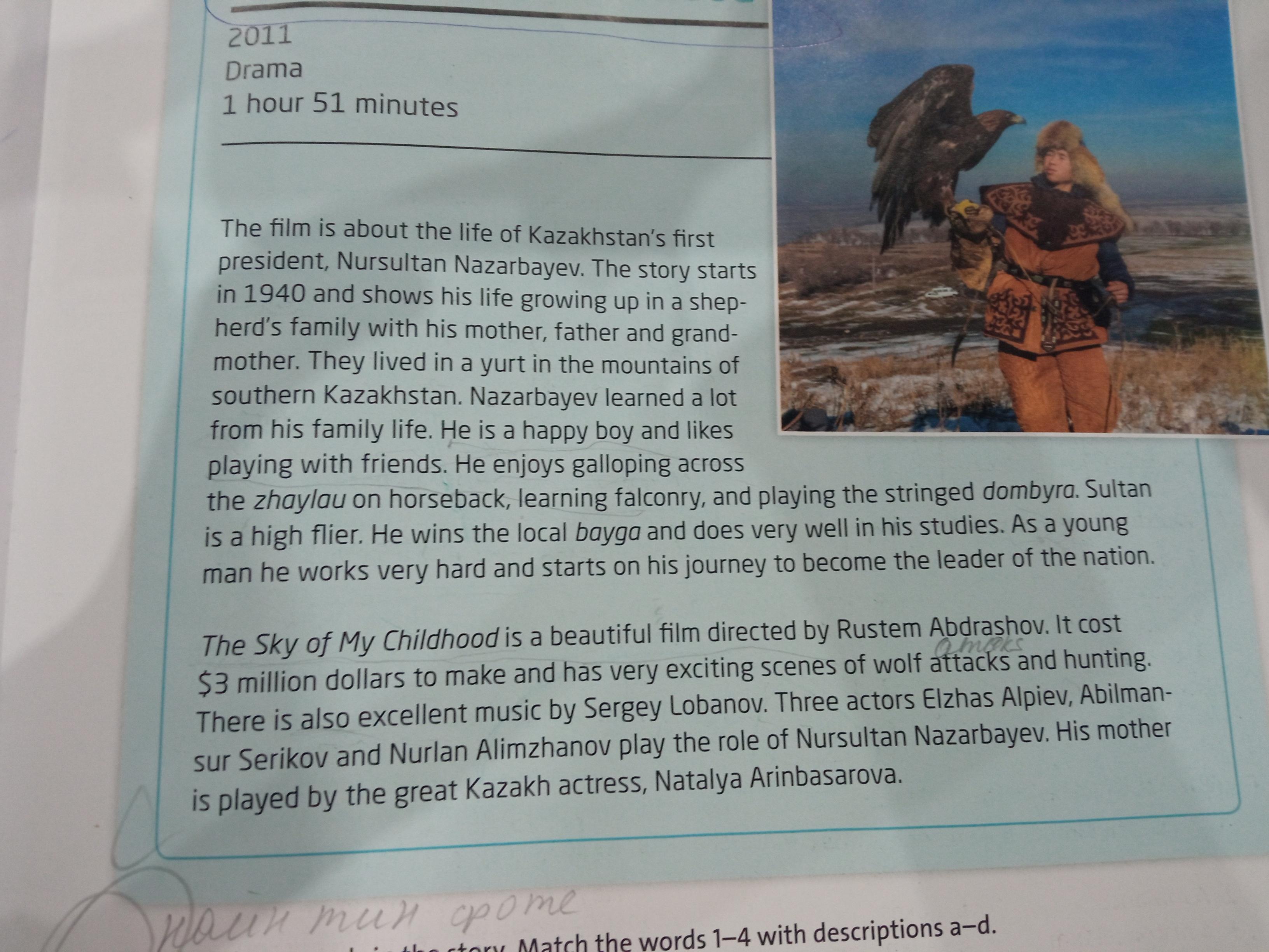 3. He enjoys galloping across the zhaylau on horseback, learning falconry and playing the stringed dombyra.