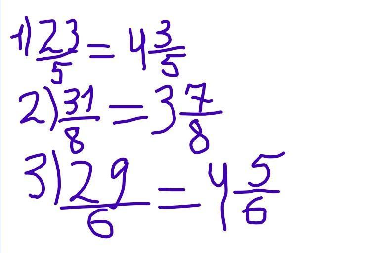 Перетворити дріб у мішане число 23/5. 31/8. 29/6
