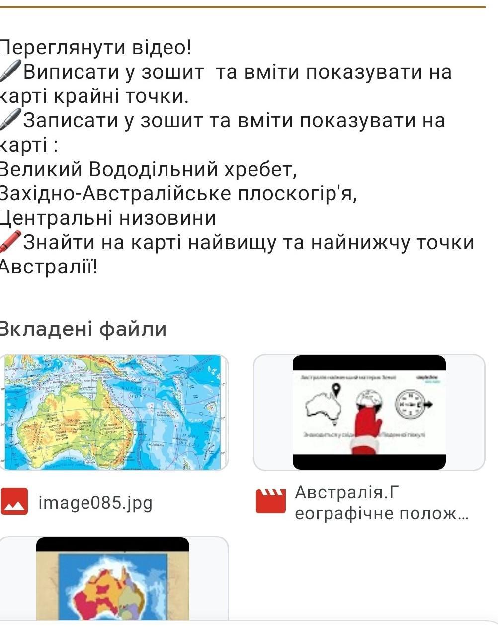 Австралія. Географічне положення. Рельєф. Виписати у зошит та вміти показувати на карті крайні точки. Записати у зошит та вміти показувати на карті : Великий вододільний хребет, Західно-Австралійське плоскогір'я, Центральні низовини Знайти на карті найвищу та найнижчу точки Австралії!