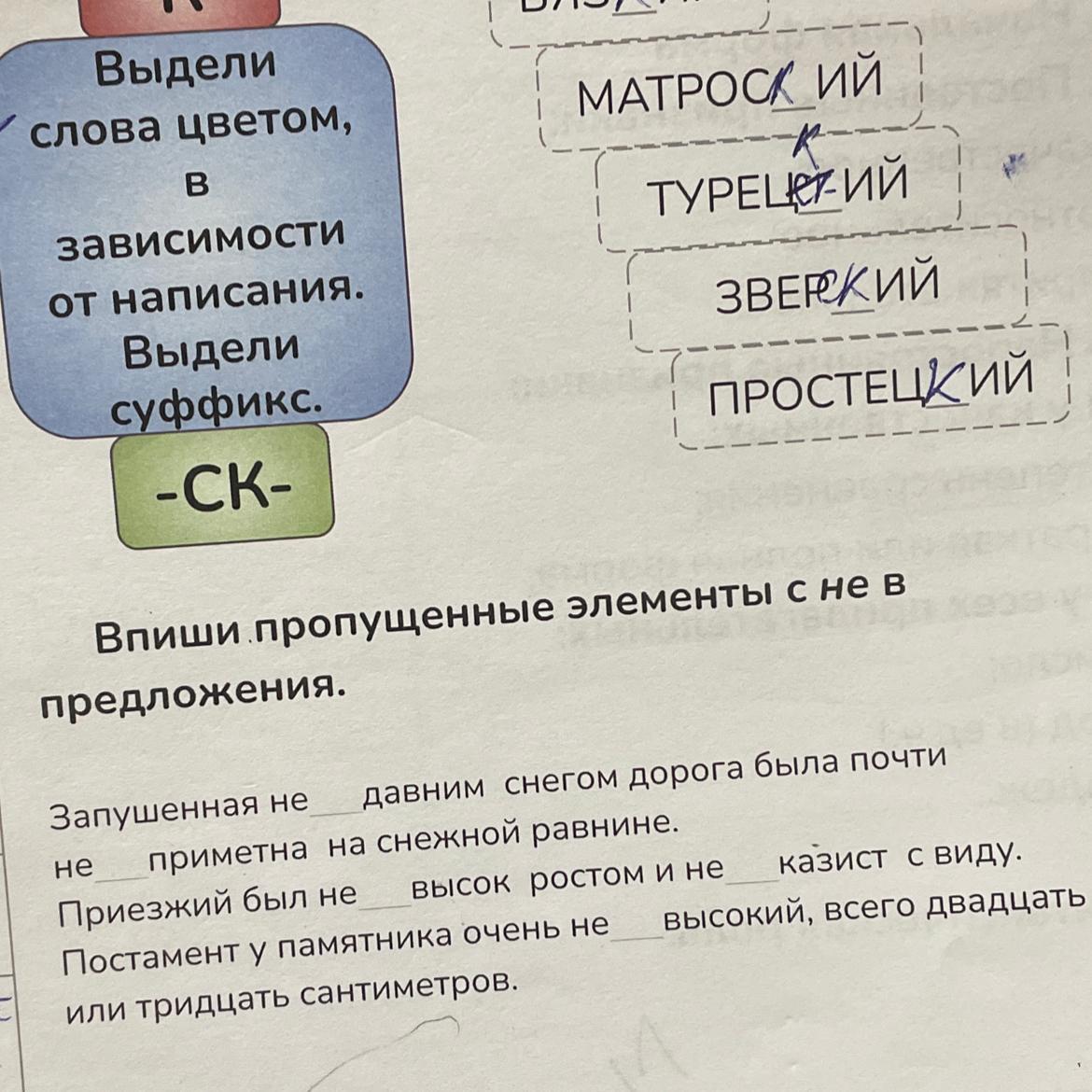 Впиши пропущенные элементы с не в