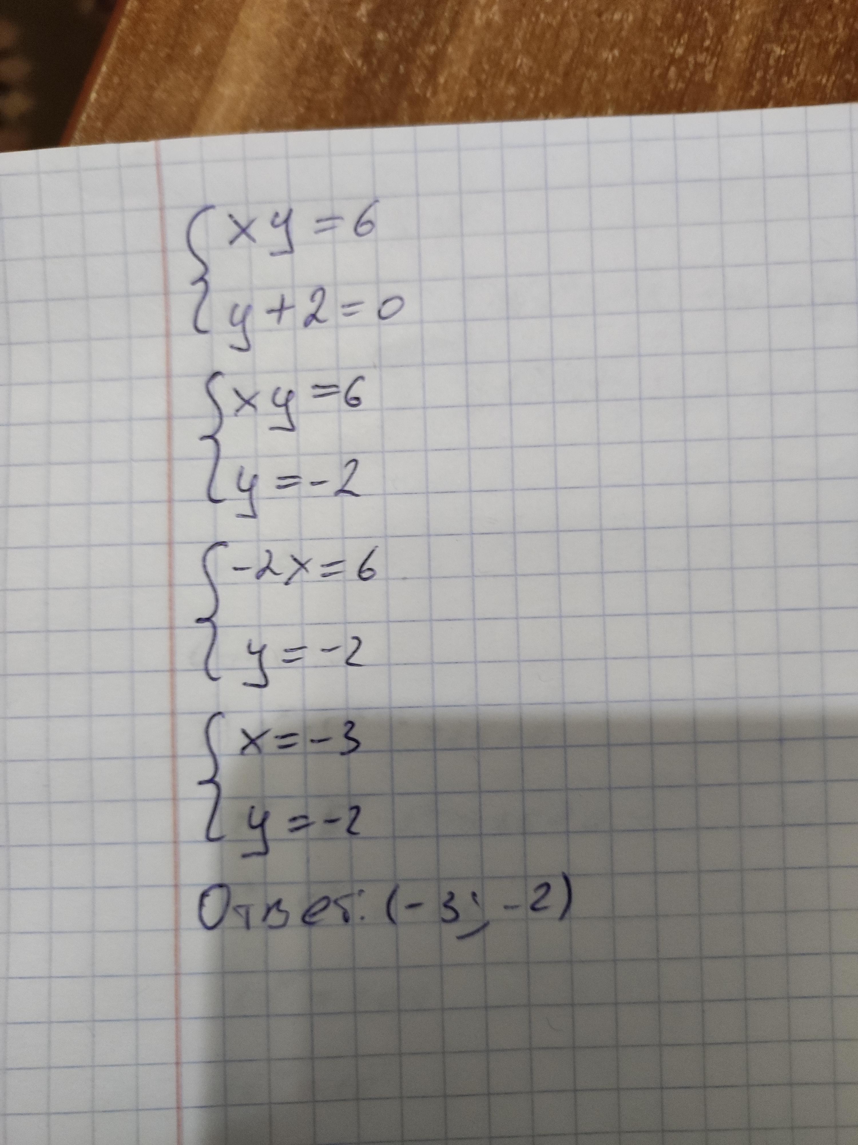y = -2