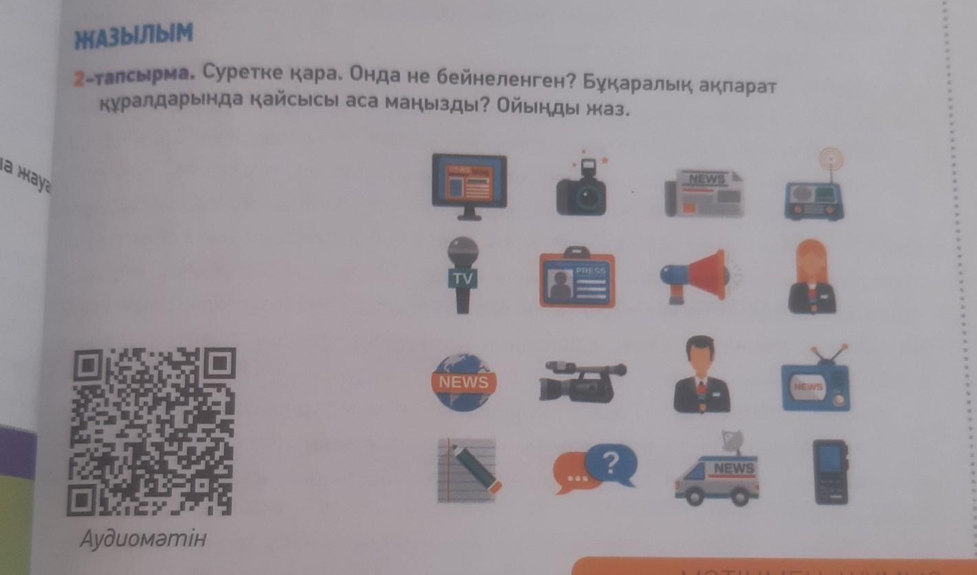ЖАЗЫЛЫМ 2-тапсырма. Суретке кара. Онда не бейнеленген? Бұқаралық ақпарат куралдарында кайсысы аса маңызды? Ойынды жаз. помогите пожалуйста
