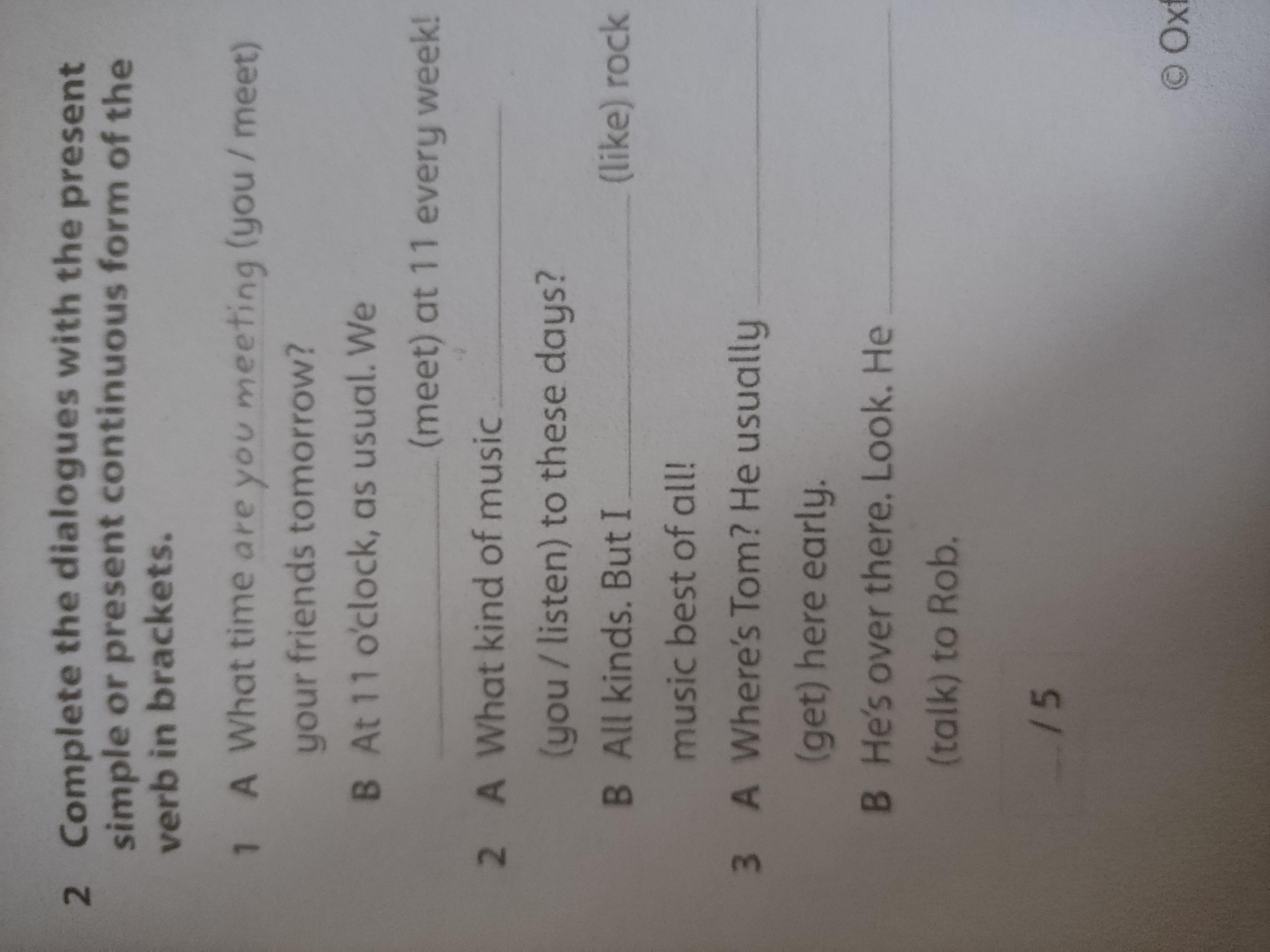 2) 1- B: we meet at 11 every week