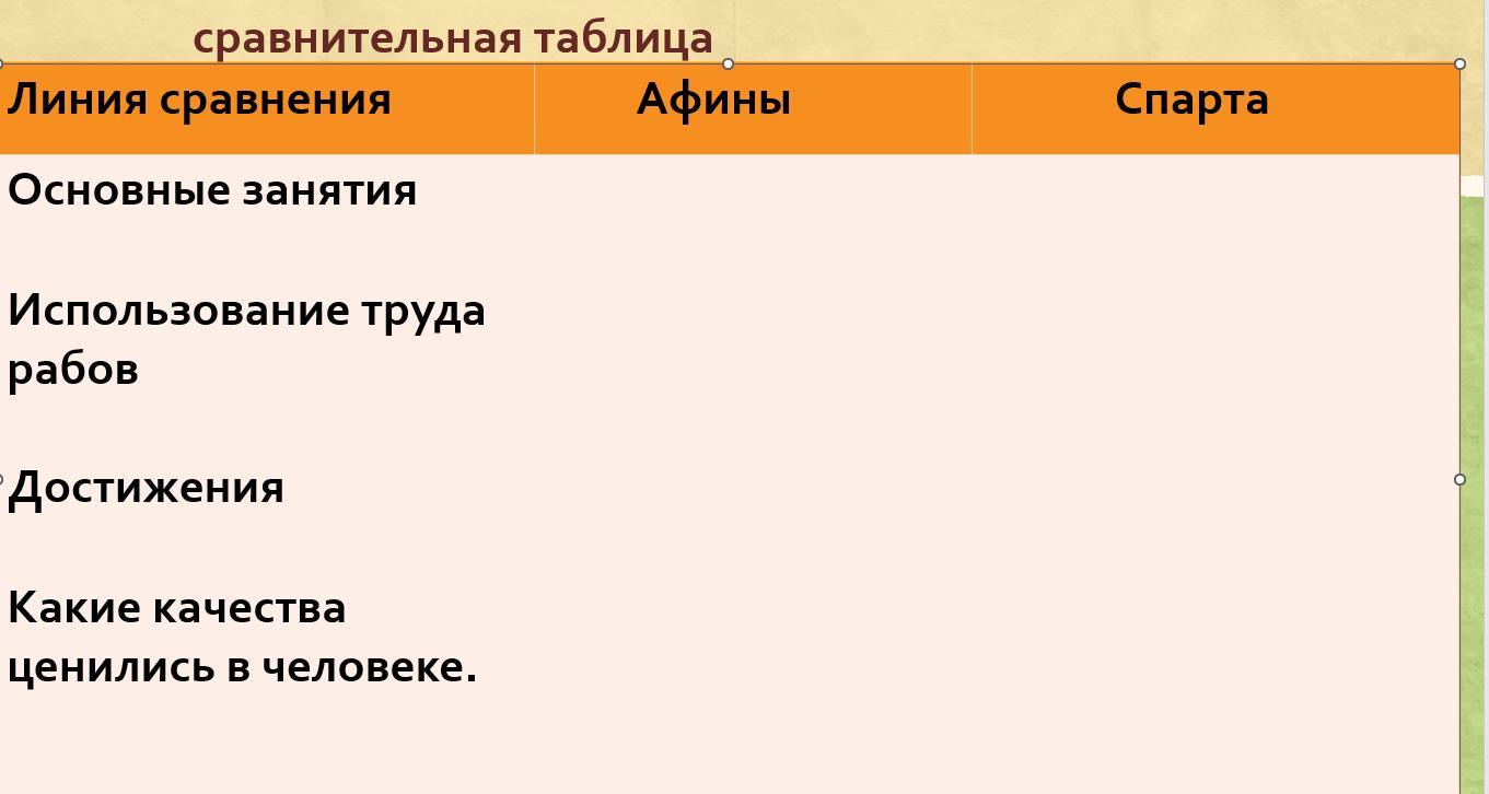 Ответ:1-афины - садоводство, скотоводство, рыболовство, ремесло, морская торговля. Спарта - военное дело, гимнастика.