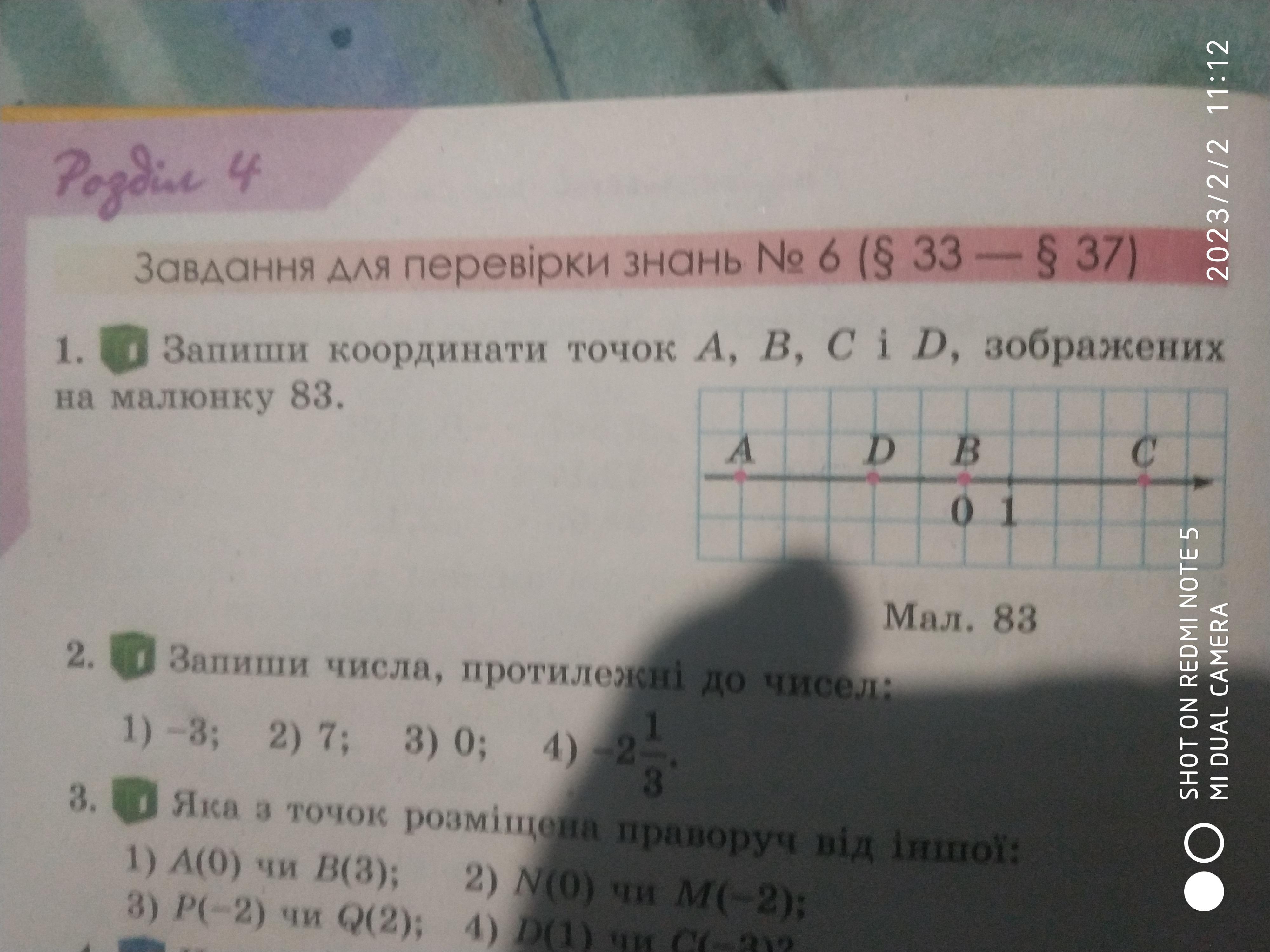 Запишіть координати точку А, В, С в D, зображенах на малюнку 83.