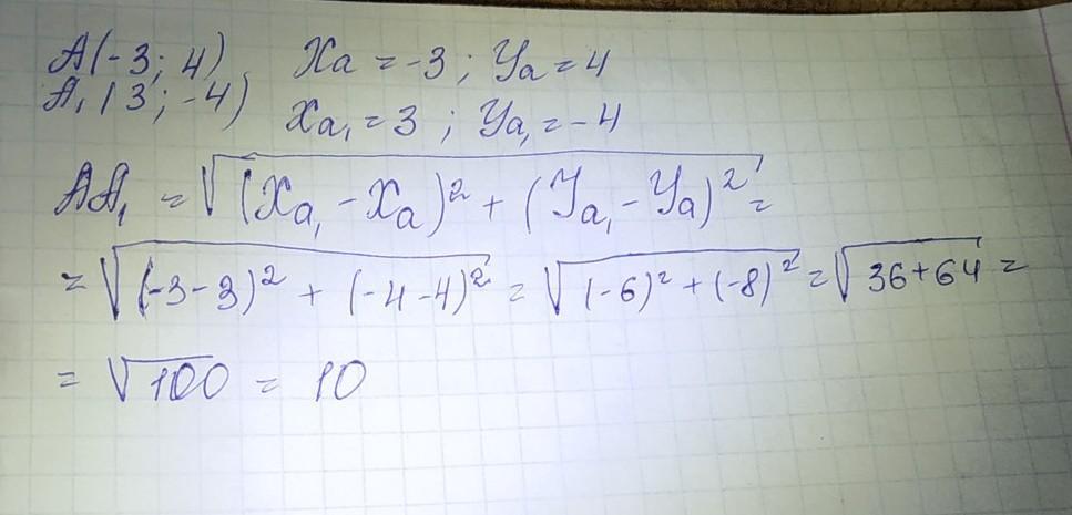 Точки А та А' симетричні відносно початку координат. Знайдіть довжину відрізку АА', якщо А(-3;4). Розв'язок обгрунтувати рисунком на координатній площині. СРОЧНО