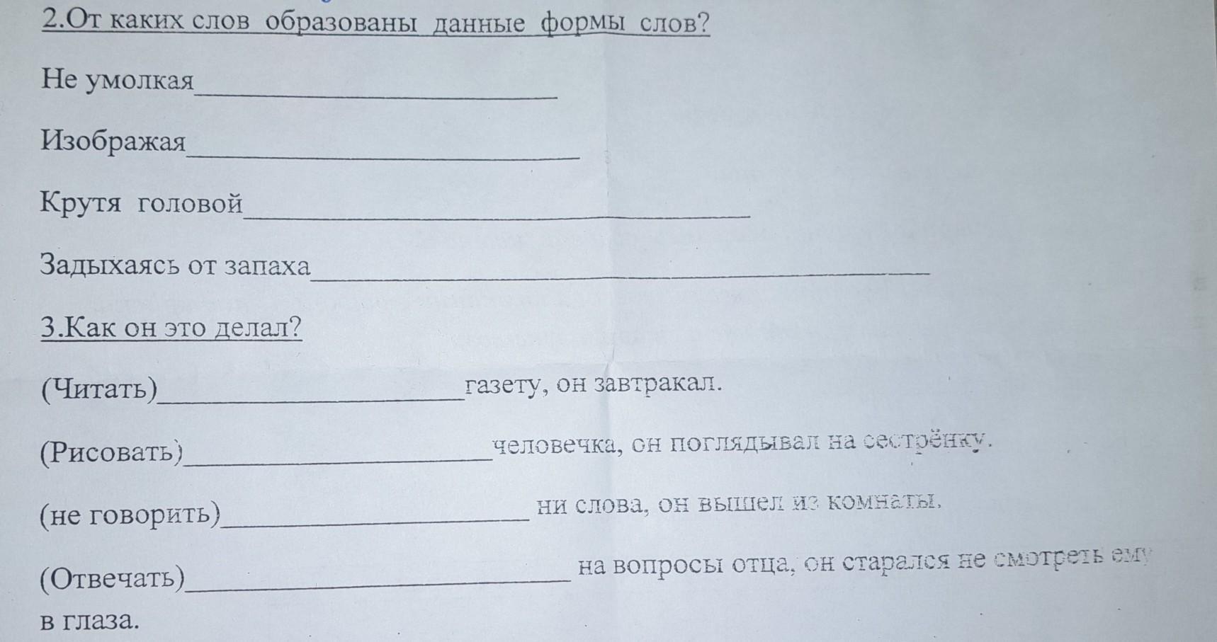 3) Читая газету.. ; Рисуя человечка.. ; Не говоря ни слова.. ; Отвечая на вопросы..