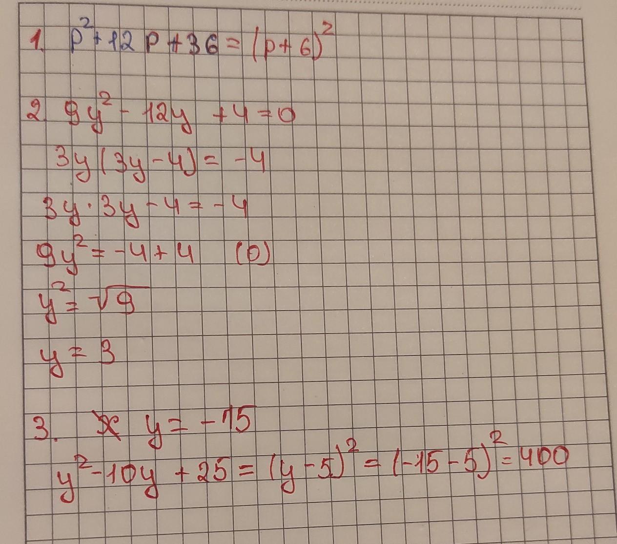 1. Представ тричлен р² + 12p + 36 у вигляді квадрата дво члена.