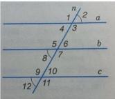 Дано:угол 1=угол 5,угол 7 +угол 12=180 . Встановити взаємне розташування прямих а, b,с.
