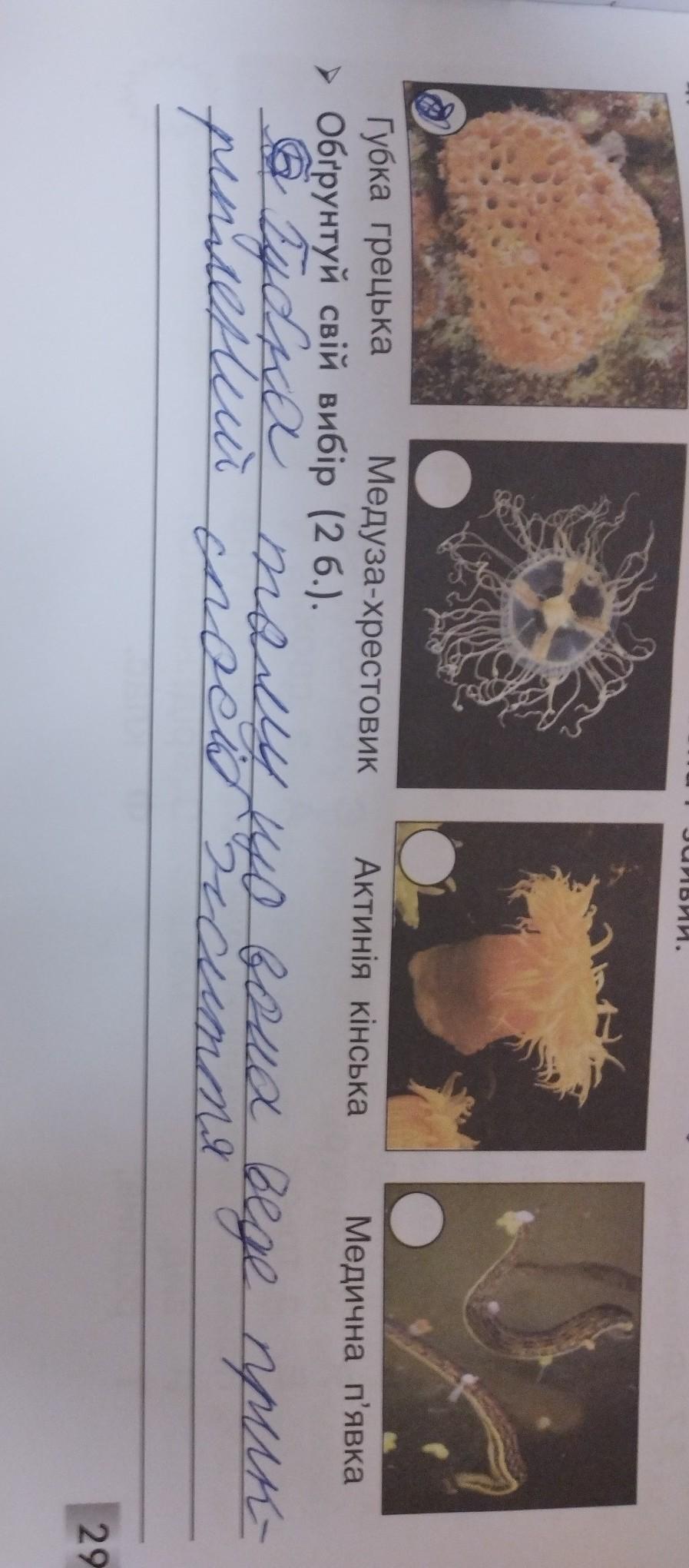 дорота. Розглянь зображені організми. Познач зайвий. Губка грецька Медуза-хрестовик Актинiя Допоможите!!