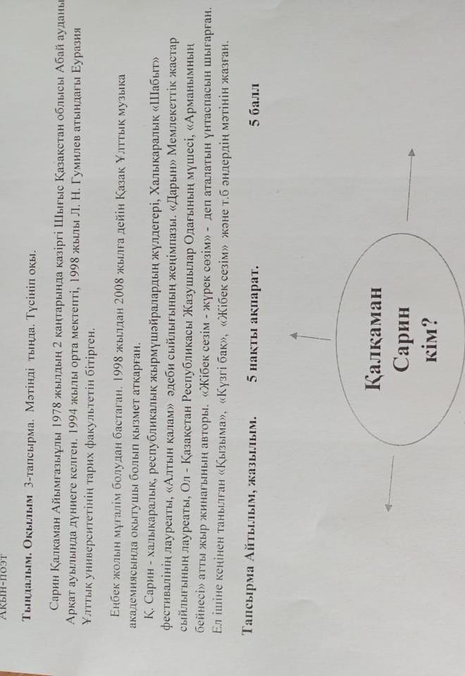 Составте кластер на тему ,, қалқаман сарин кім?'' ДАЮ 15 БАЛЛОВ