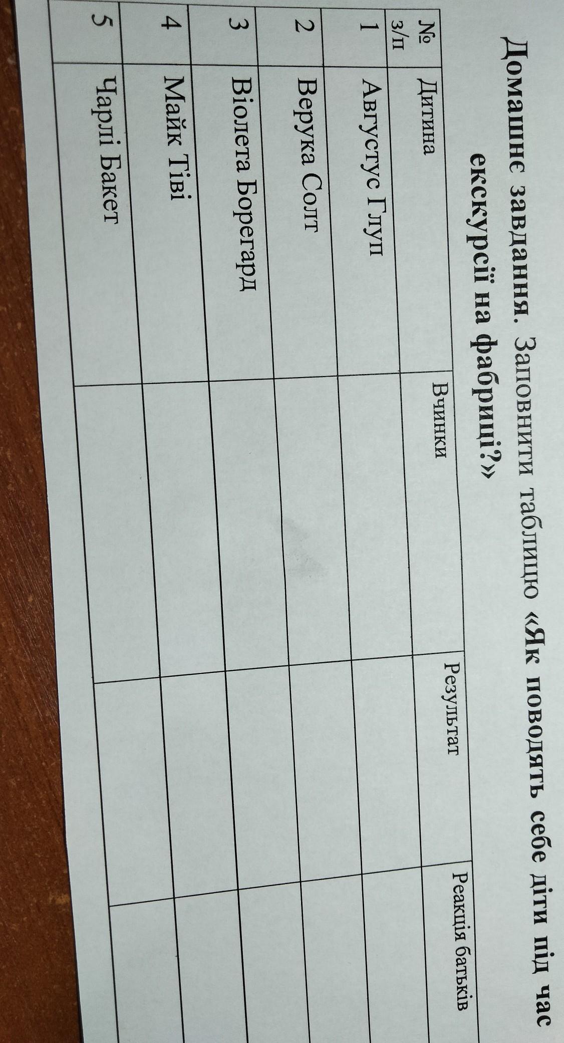 3. Віолета Борегард - із-за своєї нечемності вона зїла гумку, навіть коли Віллі Вонка сказав, що ще не можна її їсти. Віолета роздулась, як велика повітряна кулька. Мати не те щоб була в шоці, вона була в жаху.