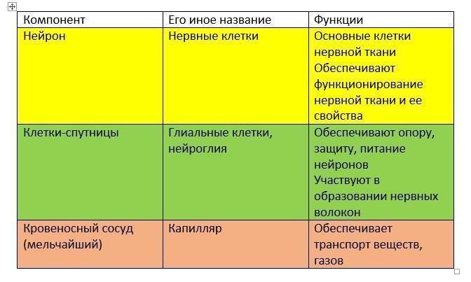 Смотрите вложение - Таблицу компоненты нервной ткани