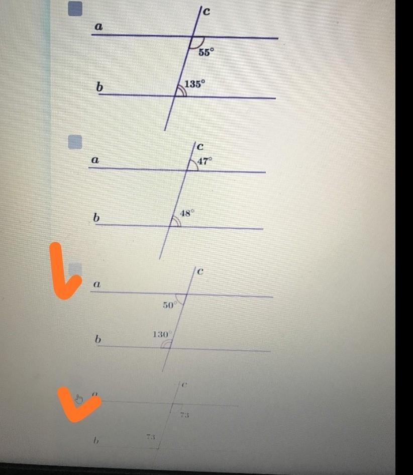 Виберіть рисунки на яких прямі а і b паралельні. Терміново допомоги будь ласка