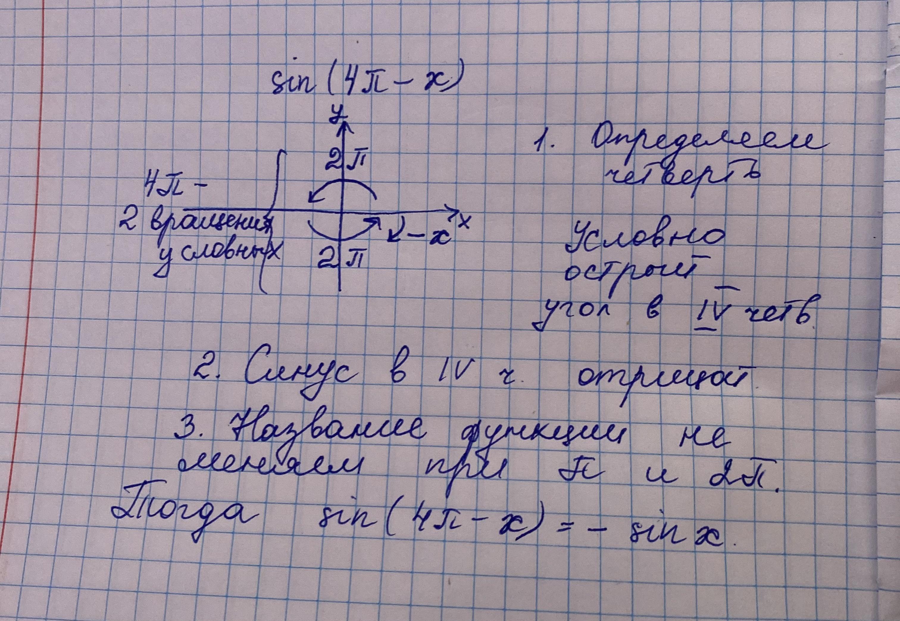 как выразить sin(4π-x) через тригонометрическиую функцию острого угла?