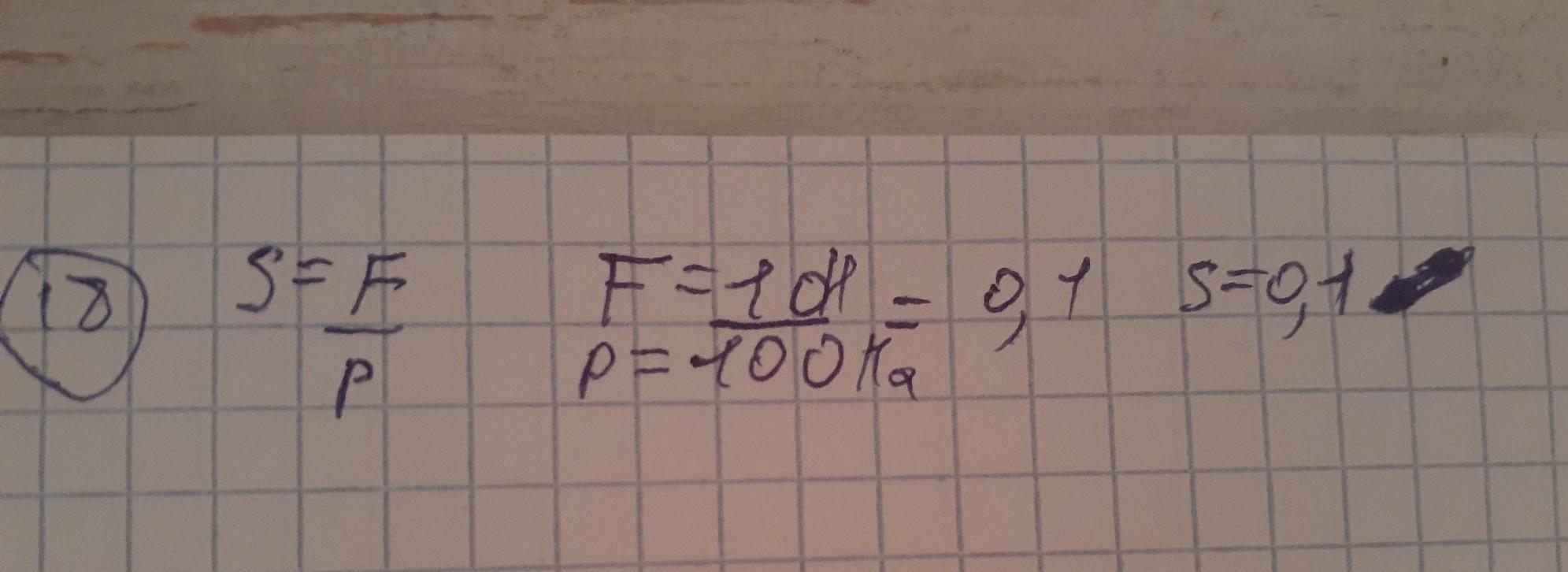 18.S=F/P F/P=10H/100Ka=0,1 S=0,1m³