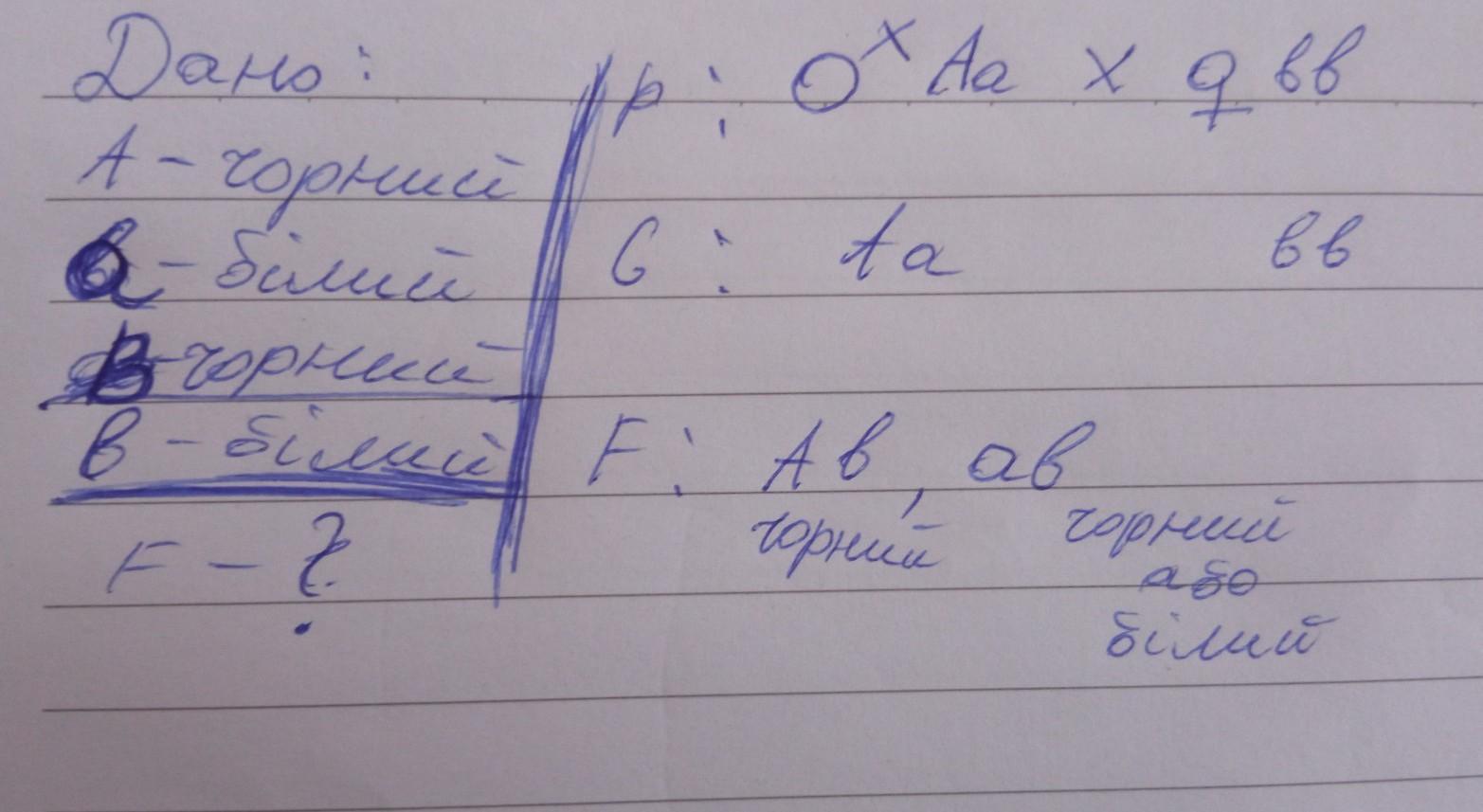 У великої рогатої худоби чорний колір шерсті домінує над білим кольором. Яких телят можна очікувати при схрещуванні білих корів з чорним бугаєм?
