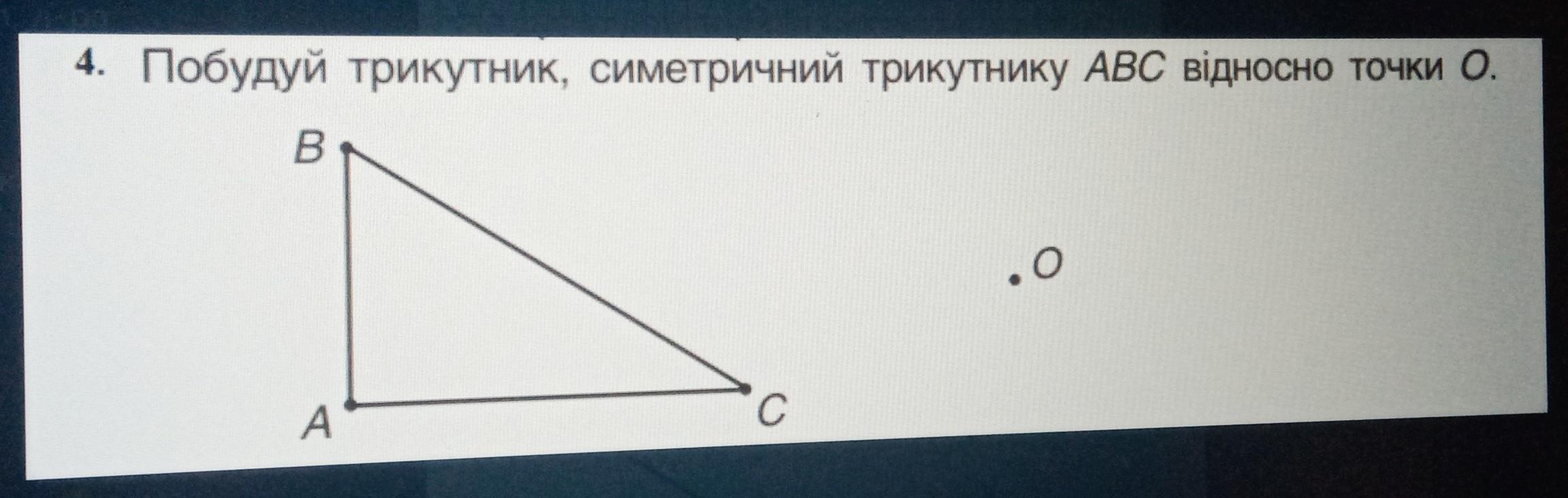 З"єднай точки СО, продовж за точку О промінь, виміряй відстаньСО і ці см відклади далі (за точку О), познач точку С₁.(СО=ОС₁)