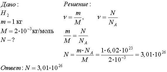 1. Скільки молекул міститься в 1 кг водню (Н2)