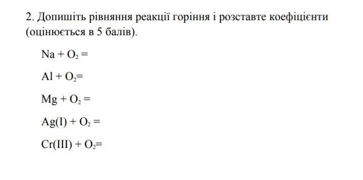 Допишіть рівняння реакції горіння і розставте коефіцієнти