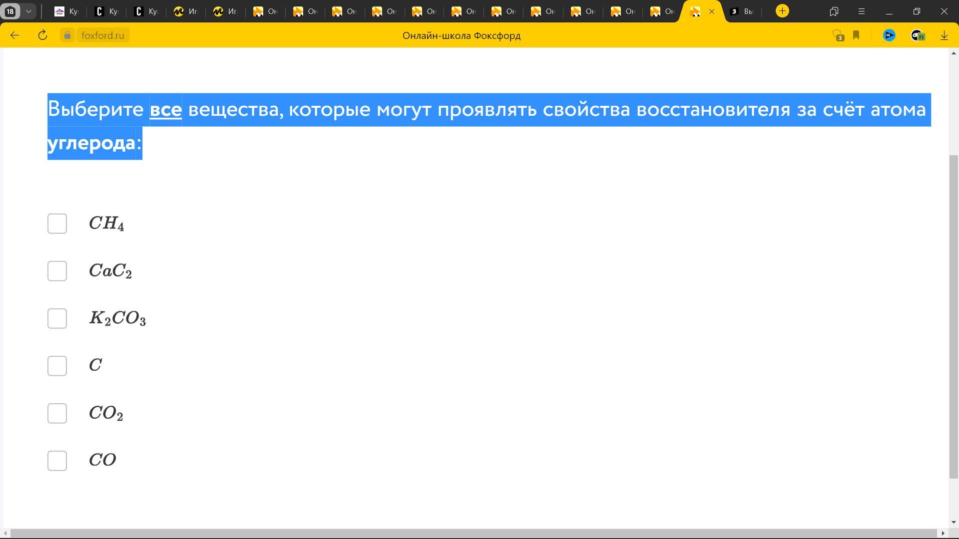 Выберите все вещества, которые могут проявлять свойства восстановителя за счёт атома углерода:
