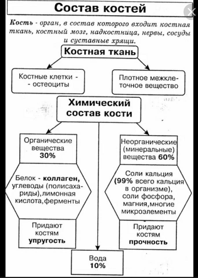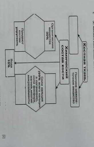 2. (а) Заполните недостающие части схемы химического состава кости. Костная ткань Химический состав кости Органические вещества 30% Придают КОСТЯМ упругость Плотное межкле- точное вещество Вода 10% Соли кальция (99% всего кальция в организме), соли фосфора, магния, многие микроэлементы