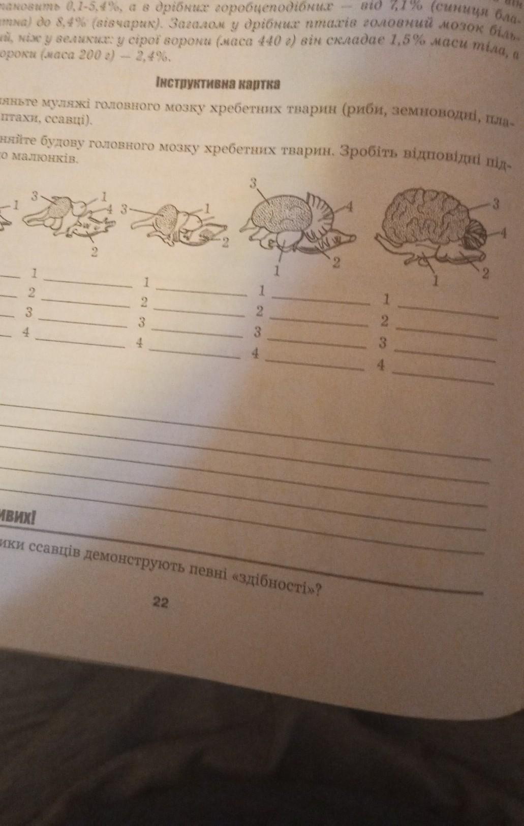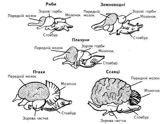Порівняйте будову головного мозку хребетних тварин