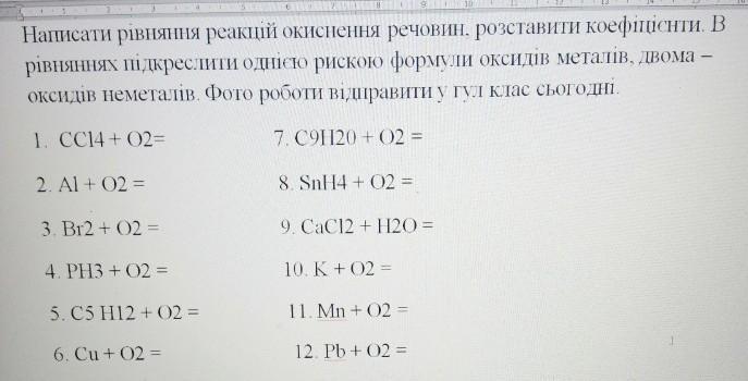 1) CCl₄ + O₂ → CO₂ + 2 Cl₂