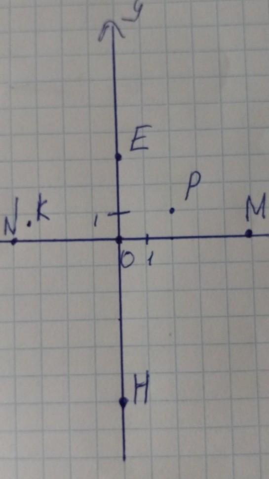 1111. Постройте прямоугольную систему координат и отметьте на координатной плоскости точки P(2; 1): N(-4; 0); E(0; 3); K(-3,5; 0,5); M(5; 0); H(0;-6).