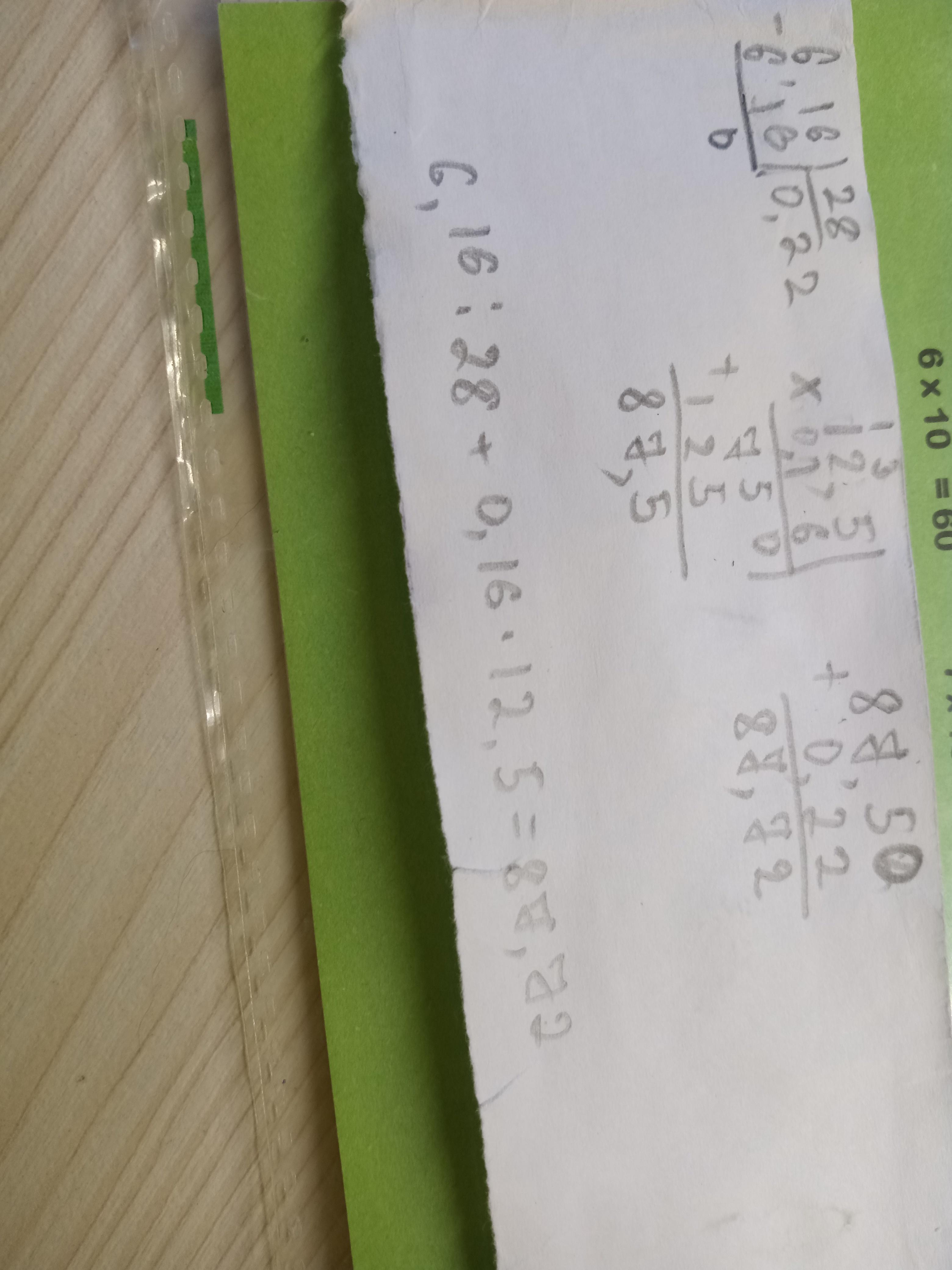 5. Вычислите : 6,16 : 28 + 0,16 *12,5 пж по сору в столбик
