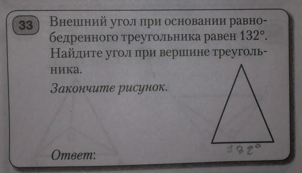 1) 180 - 132 = 48* - 2 угла прри вершине.