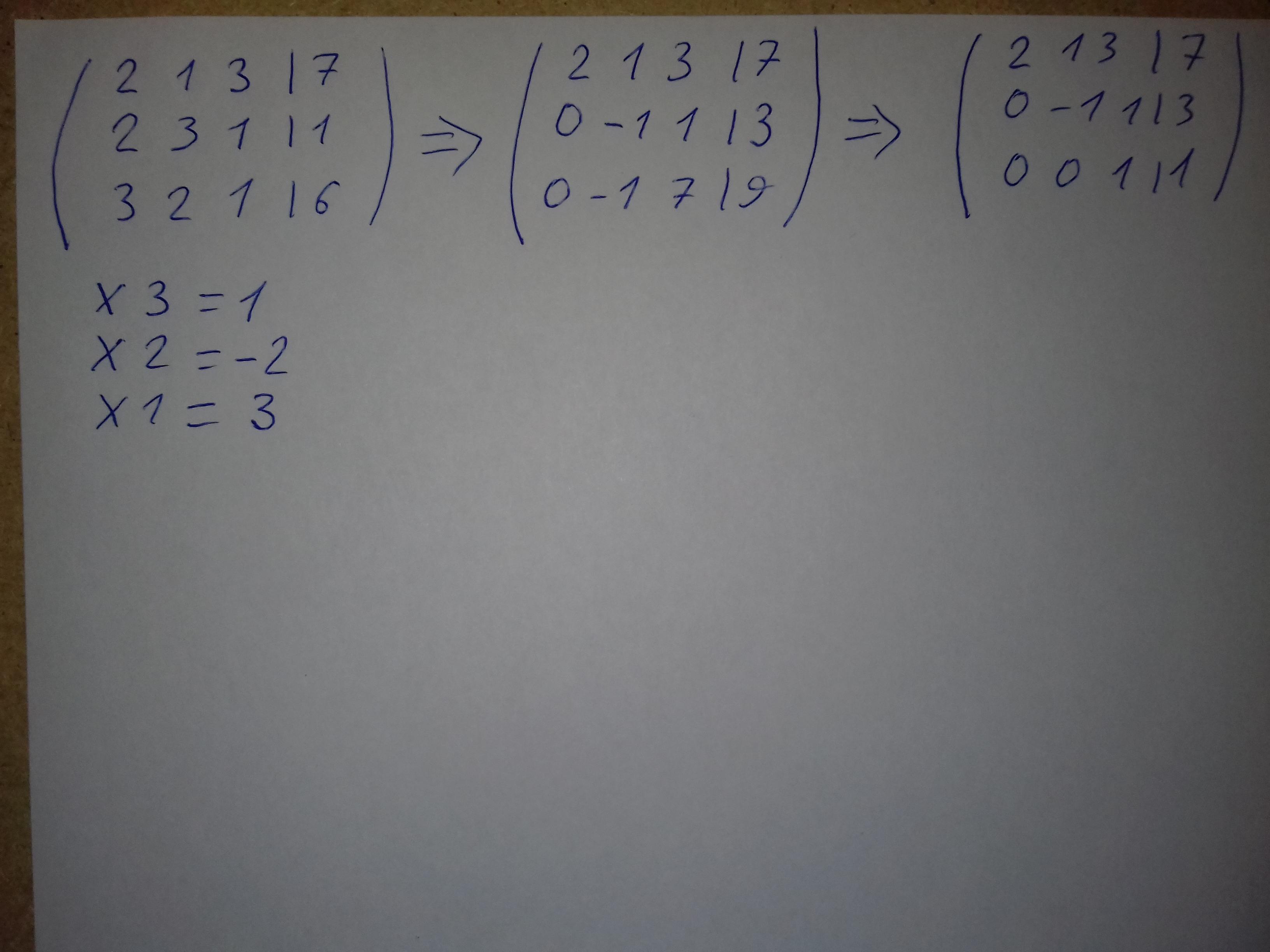 Система сумістна, має рішення: Х1 = 3, Х2 = -2 та Х3 = 1.