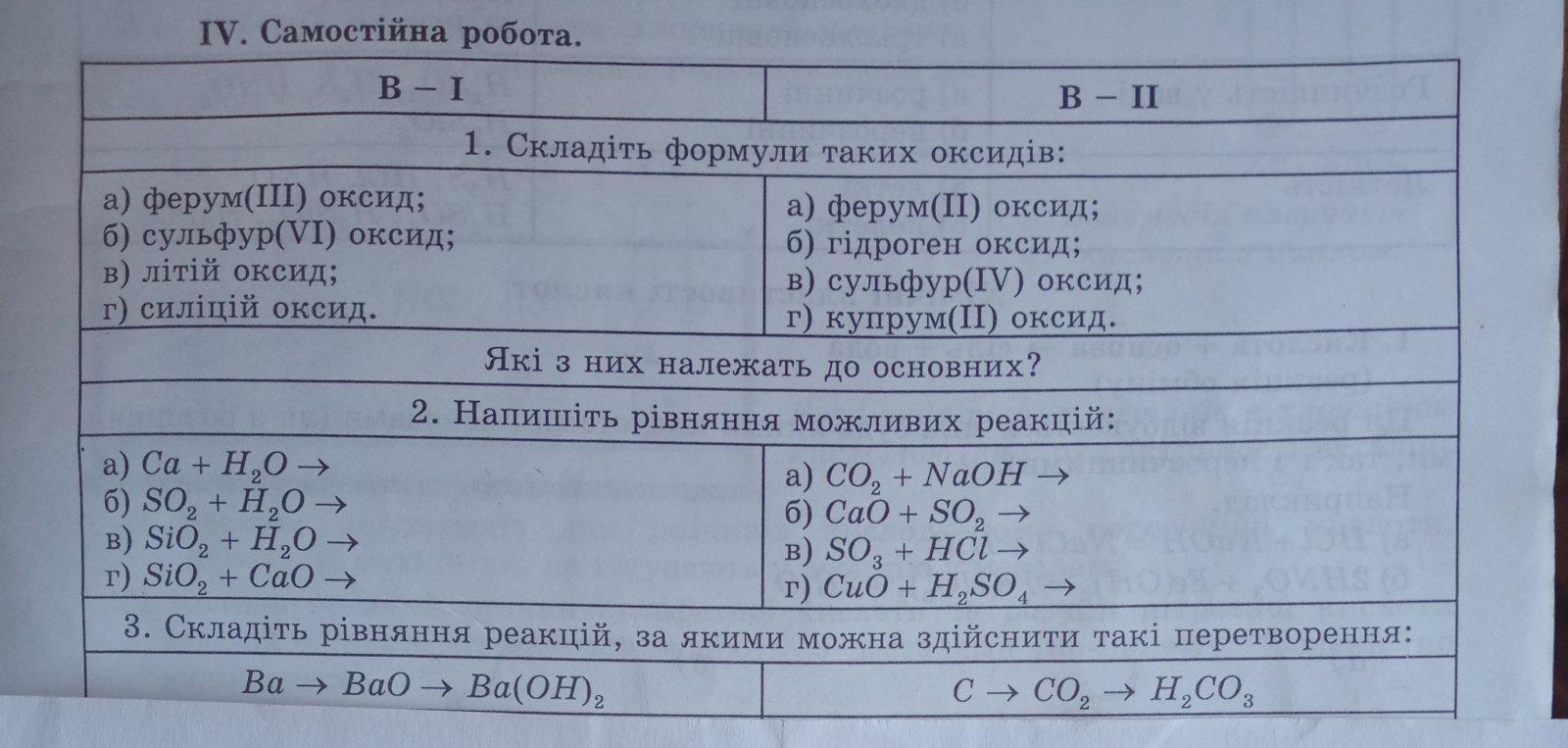 1. Формули оксидів: