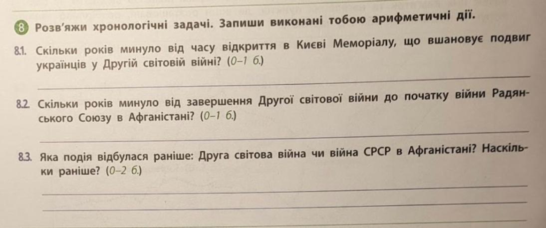 8.3 Друга світова війна(1939) відбулася раніше ніж війна СРСР в Афганістані (1979). на 40 років.