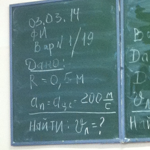 V=sqrt(a*R)=sqrt(200*0,5)=10 м/с