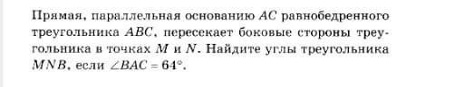 Прямая, параллельная основанию АС равнобедренного треугольника АВС, пересекает боковые стороны треу- гольника в точках М и N. Найдите углы треугольника MNB, если